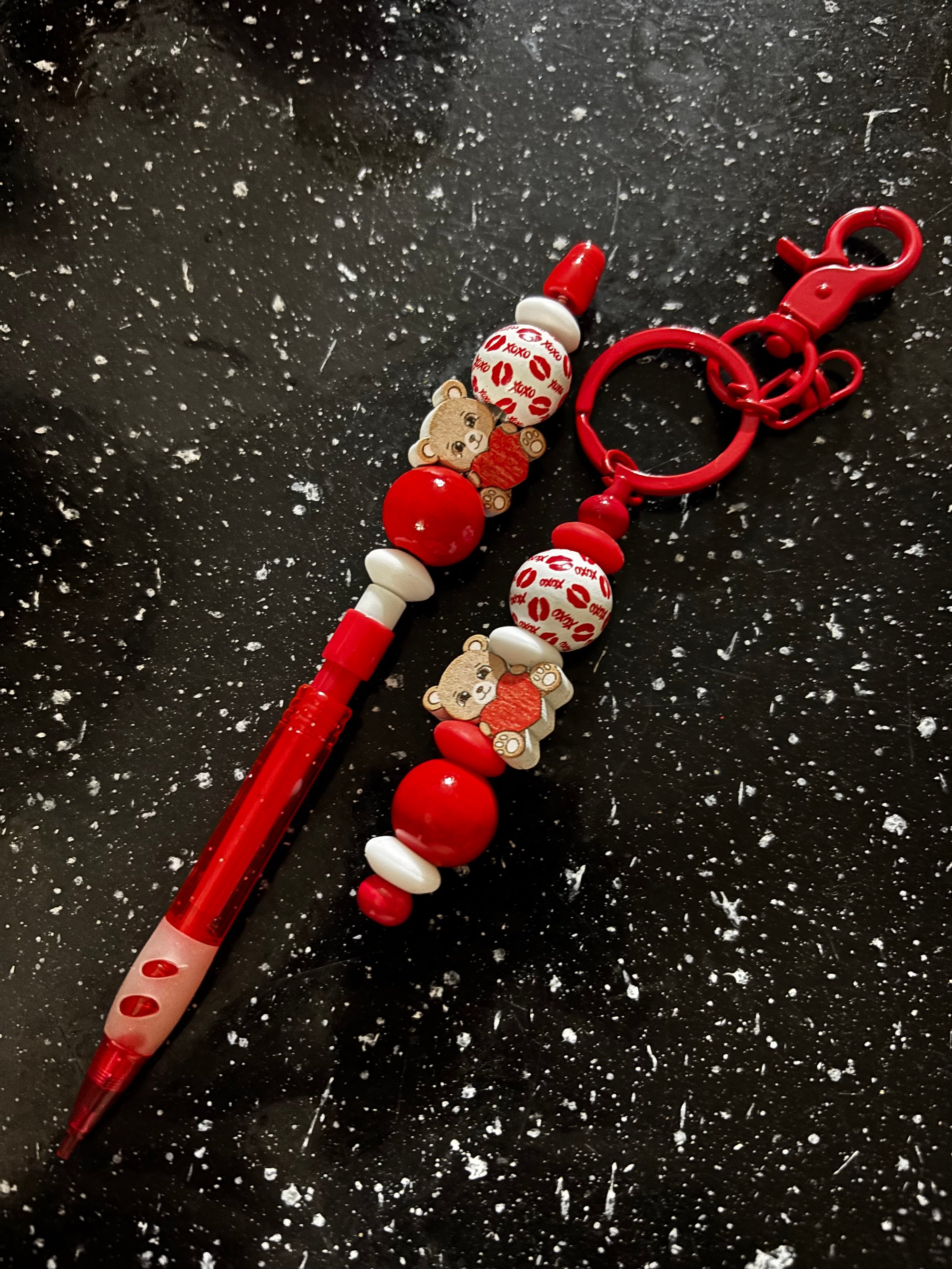 Wooded beaded pencil & keychain